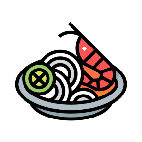 Rice Stick (Prinç Eriştesi), Karides, Havuç, Mantar, Yeşil Soğan, Soya Filizi, Kaju Fıstık ve Lime Limon İle Servis Edilir.